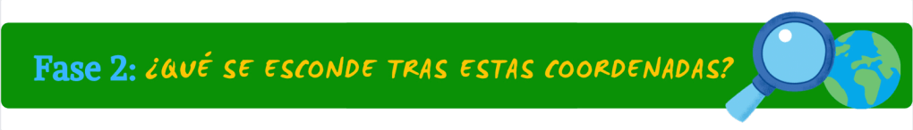 Una vez superada la anterior fase, tendréis que descubrir qué se esconde tras una de las siguientes coordenadas. Los chicos y chicas que vayáis superando el reto anterior, podéis elegir las coordenadas que queráis (solamente una fila) y rellenar este documento conforme vayáis investigando.